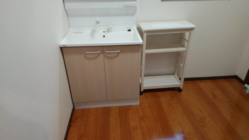 脱衣所に小物類を置きたいとの事でしたので、木製のワゴンを置きました。