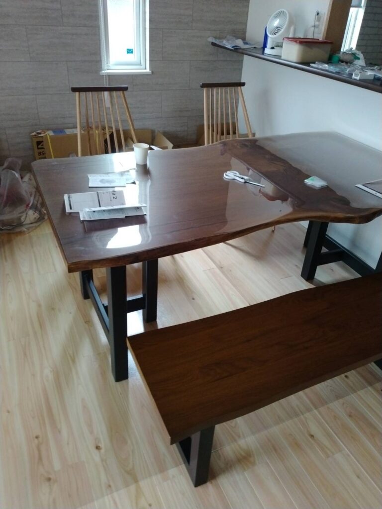 ウォ―ルナットの2枚接ぎ(ブックマッチ)一枚板の食卓です。